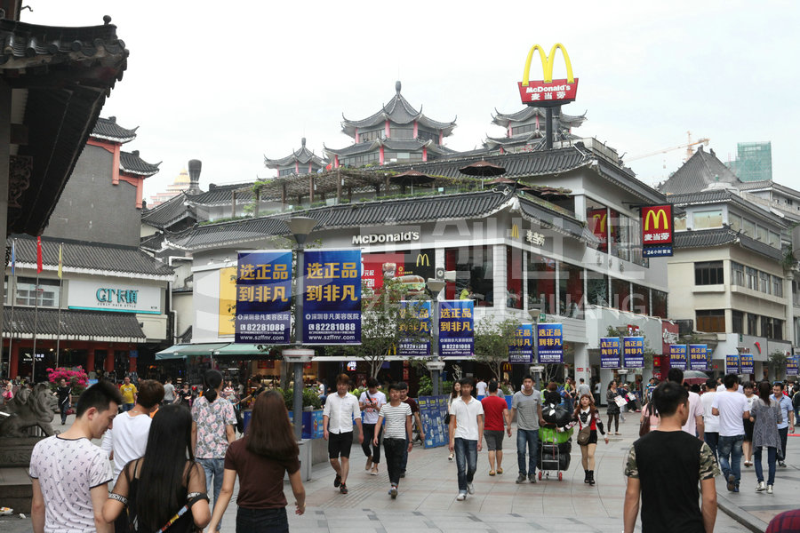東門商業(yè)步行街,北至立新路,南至深南路,東到東門中路,西至新園路,總占地面積17.6萬(wàn)平方米,28棟現(xiàn)代化大型商廈分布在15條主要街道上,總建筑面積達(dá)80萬(wàn)平方米,日均人流量30萬(wàn)人次,年?duì)I業(yè)額超過(guò)80億。是集旅游觀光、飲食休閑、購(gòu)物消費(fèi)為一體的標(biāo)志性商業(yè)街區(qū)。