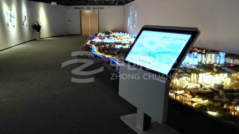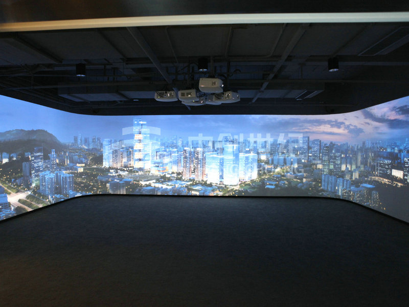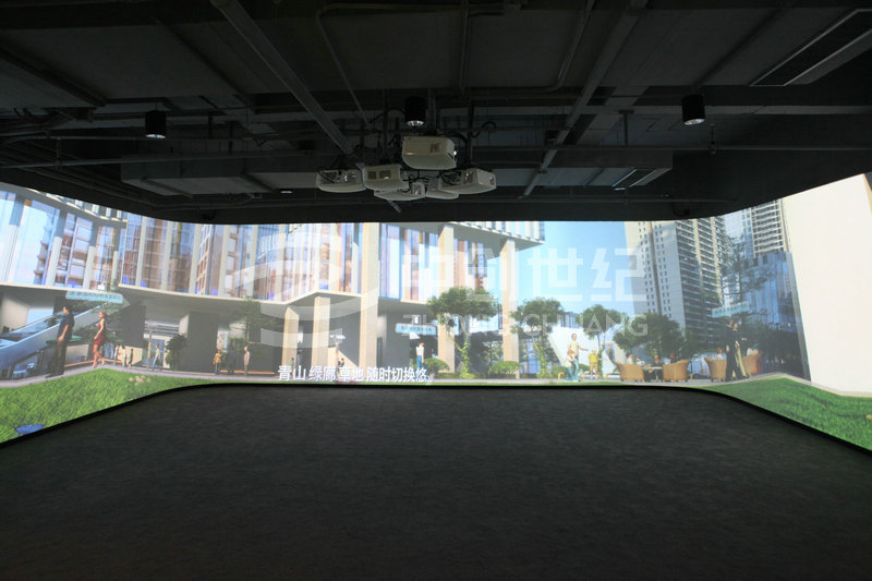 整個系統(tǒng)涉及擴聲音響、投影顯示、液晶拼接、高清信號傳輸以及集中控制等系統(tǒng)組成。其中影院區(qū)采用3臺高清投影機融合滿足143度弧型顯示;沙盤區(qū)采用1臺高清投影機與1臺360度高清投影機拼接滿足L型幕的顯示;體驗區(qū)采用6臺高清投影機整合滿足三面環(huán)幕顯示;品牌接待區(qū)采用3*3 46寸LED超窄邊液晶拼接大屏。
