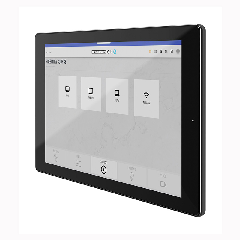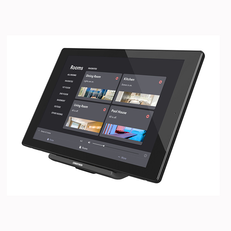 快思聰 TST-1080 無線觸摸屏,能夠?qū)崿F(xiàn)許多以前無法實(shí)現(xiàn)的功能。它不僅適用于商業(yè)環(huán)境,如會(huì)議室,也能完美融入住宅空間,例如家庭影院。屏幕上精心設(shè)計(jì)了一個(gè)通用狀態(tài)欄,預(yù)裝了多種虛擬按鈕,以執(zhí)行日常最常用的操作,包括開關(guān)設(shè)備、調(diào)節(jié)燈光亮度、快速返回主頁等。該解決方案由Crestron HTML5用戶界面和Crestron Construct?軟件的全面支持,用戶可以輕松定制屏幕,以適應(yīng)用戶任一功能的需求。
