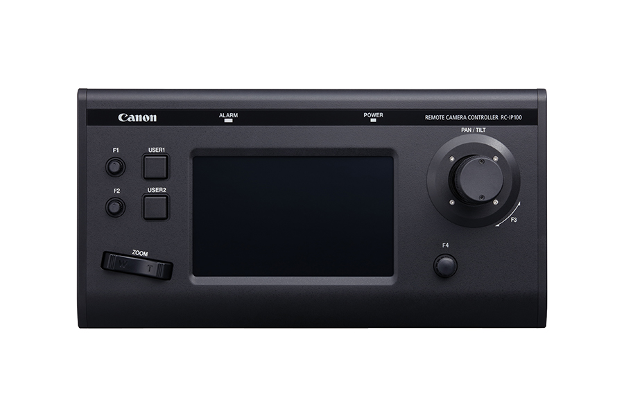 佳能RC-IP100攝控一體機控制器支持IP端口和串口通信協議,并具備觸摸屏。利用RC-IP100的控制桿、蹺板式變焦桿可控制每個攝控一體機的水平/垂直轉動、變焦、對焦和光圈調整等功能。當使用IP端口連接時,攝控一體機控制器可以控制多達100個支持“XC協議”的產品。
